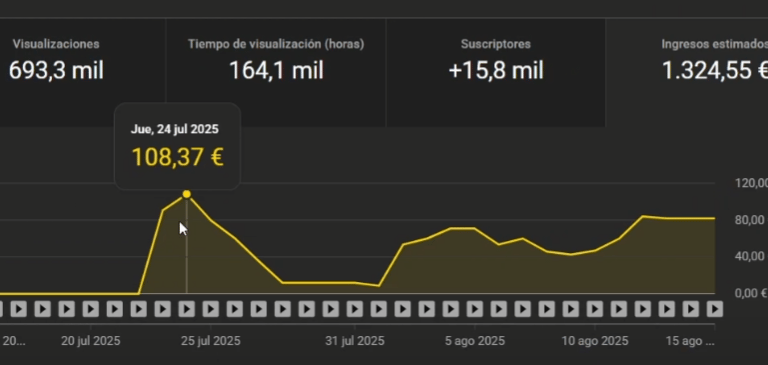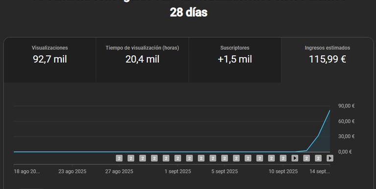 No tenían ni idea. Cero experiencia, cero estrategia. En menos de dos semanas monetizaron y en su primera semana ya monetizados hicieron más de 100€ en un solo día. No fue suerte. Fue sistema.