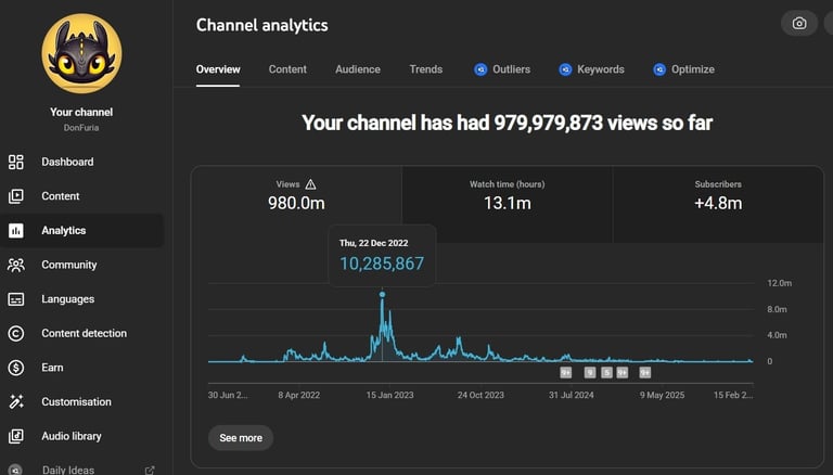 He creado canales que en conjunto han hecho casi 10 millones de suscriptores.